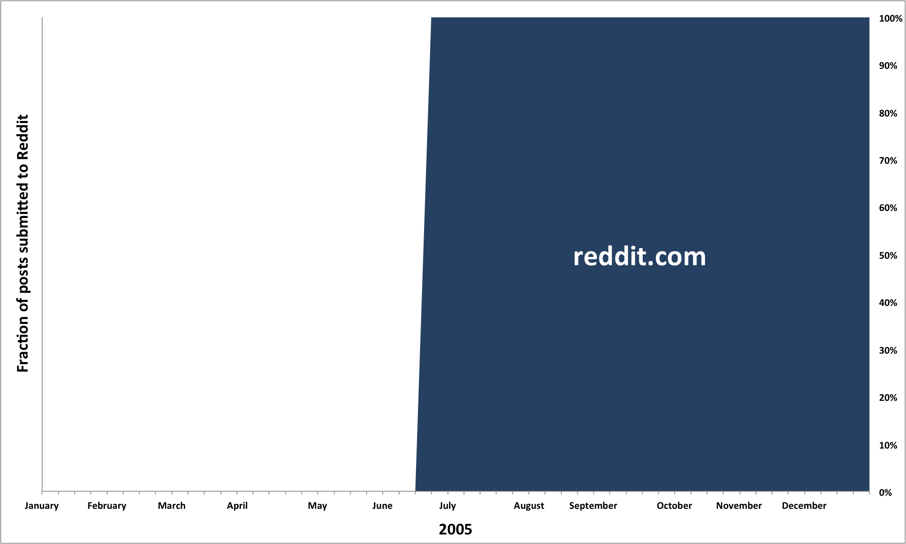 Have you ever wondered how the Reddit community has changed since it started in 2005? I've only been active on Reddit since late 2011, so I've always been curious how Reddit looked before I came along. In this post, I try to retrace the evolution of the Reddit community from its inception in 2005 up to November 2012 by analyzing the posts that users submitted to Reddit over time.