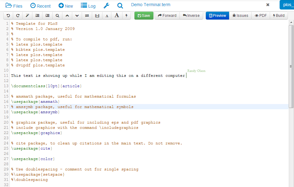 One benefit of working on the web is that multiple people can work on a document at once. Sagemath Cloud makes this happen for all of the services it offers, including LaTeX.