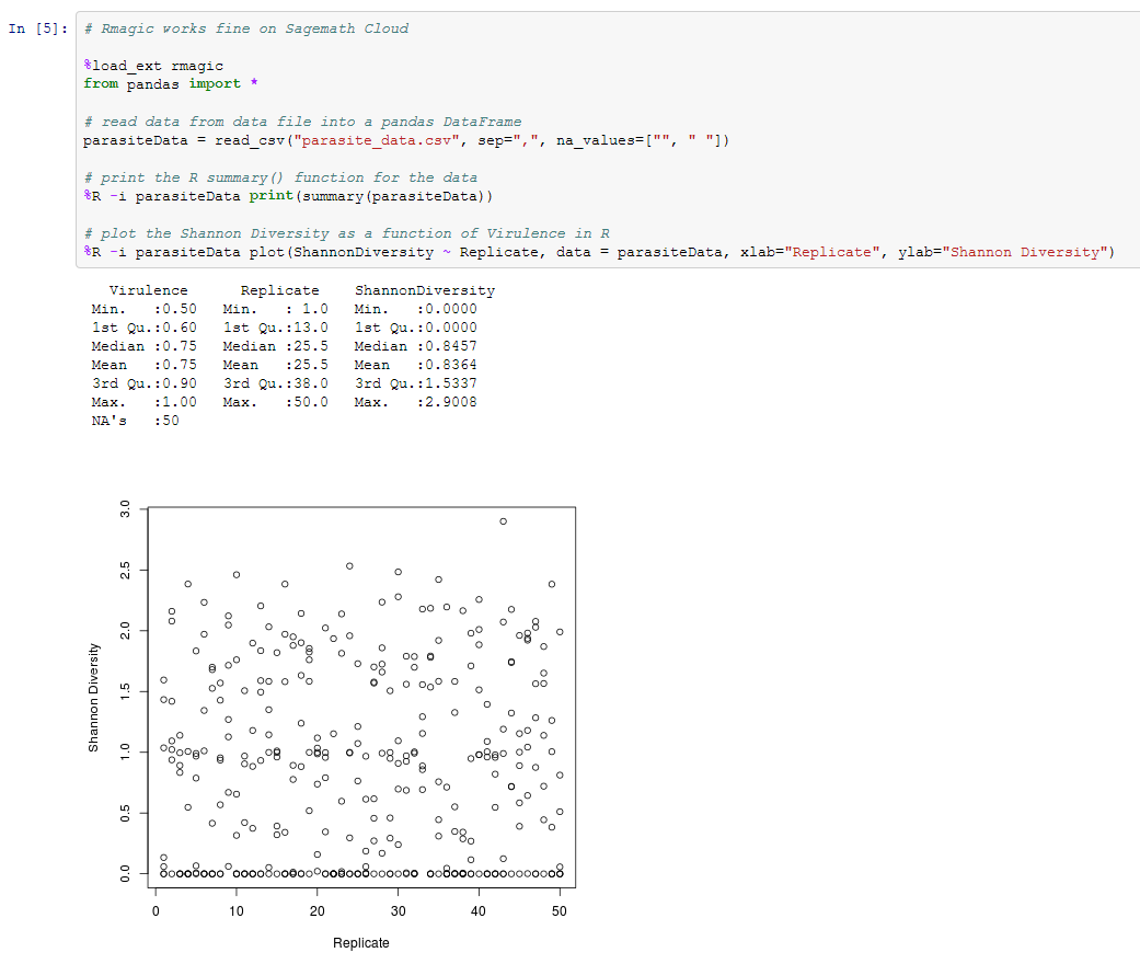 They even have the IPython magic libraries installed, so I was able to replicate my Rmagic IPython tutorial and run R code in the IPython Notebook as well.