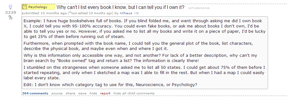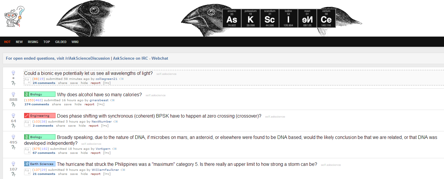 A typical question on /r/askscience