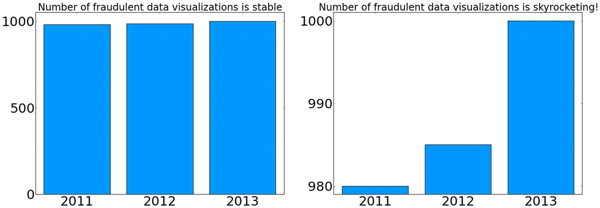 Is an increase of 15 fraudulent visualizations from last year really "skyrocketing"? Don't let the structure of the visualization decide that for you.