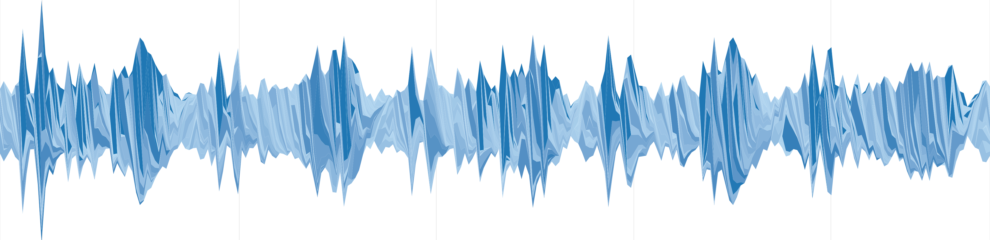 Six years ago, the NY Times published one of my favorite interactive graphics entitled, "The ebb and flow of movies." This brilliant graphic concisely visualized over two decades of box office sales with the now-popular streamgraph. The colors indicated how well each movie did -- from hit to flop -- and the height of the vertical area signified how "hot" each movie was the box office each week. As you scroll through the years, you'll see now-classics like Back to the Future and Jurassic Park pop up and fade away in the seemingly endless stream of time.