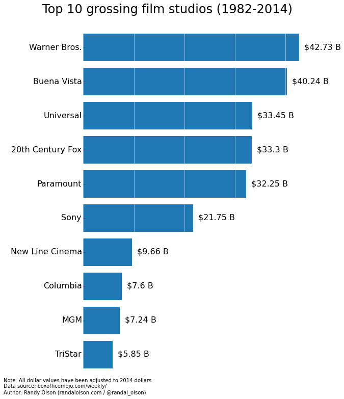 Top 10 grossing film studios in the U.S. (1982-2014)