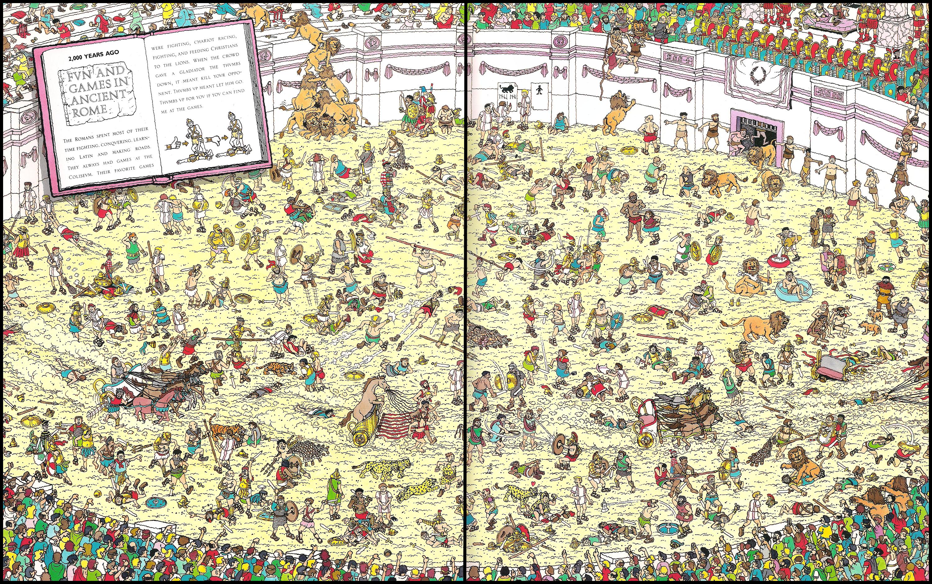 The trouble is when an outlier illustration comes along. When you're on an outlier illustration, you not only waste time following the path, but then you're left disoriented trying to trace back and worrying that you missed Waldo. Waldo-spotting performance degrades on these outlier illustrations, so don't be discouraged by Book 1, which has 4 (!) outliers in it.