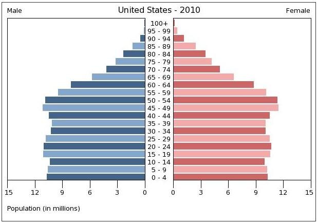 If you've ever browsed the U.S. Census population statistics pages, you've no doubt come across the famous population pyramid that they so frequently use to display the distribution of the U.S. population by age and gender.